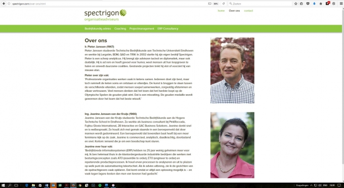 Voor ondernemer Pieter Janssen, organisatieadviseur, draait alles om zijn (bestaande) netwerk. Op zijn site presenteert hij zich professioneel maar op ingetogen wijze. Een bewuste keuze, want in zijn branche zijn discretie en vertrouwen cruciaal.